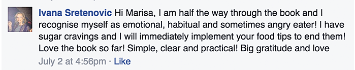 Marisa's wonderful book made so much sense and was a delight to read, it was impossible not to change my eating habits and to ultimately shed 42lbs. I have recommended it to just about everyone I know. If I can do it - anyone can!